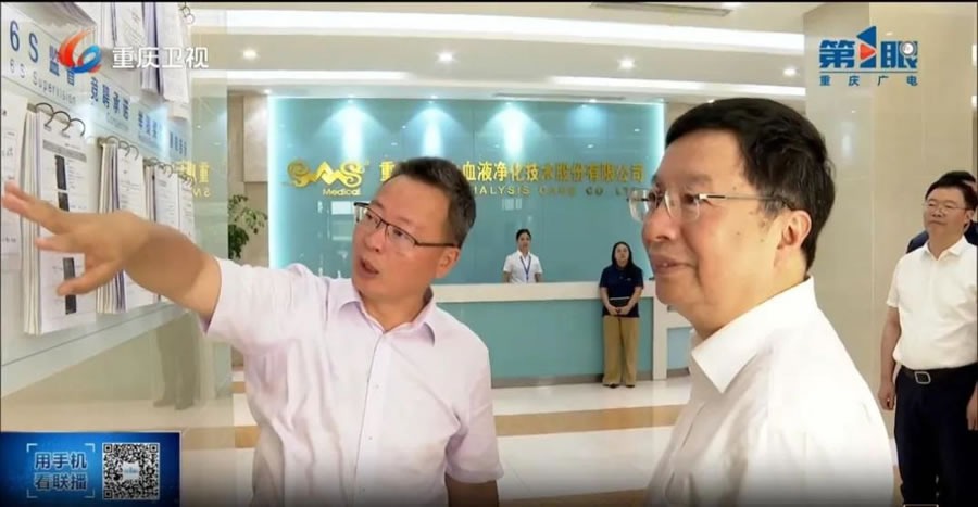 8月5日,重慶市委副書記、市長胡衡華蒞臨重慶山外山血液凈化技術(shù)股份有限公司(“山外山”,科創(chuàng)板股票代碼:688410)調(diào)研。山外山董事長高光勇陪同調(diào)研。